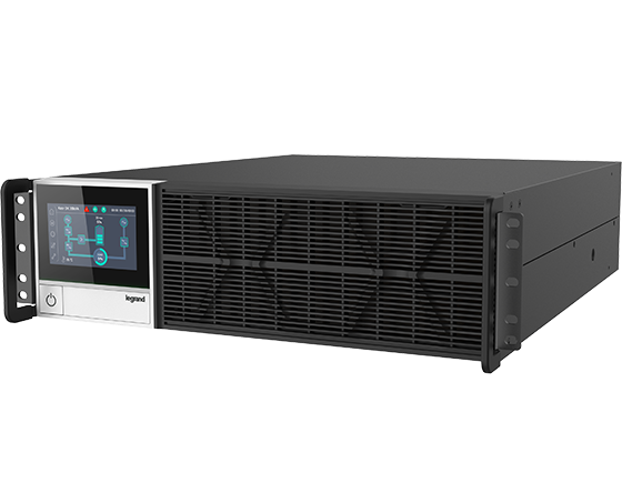 Er liefert eine Nennleistung von bis zu 10 kVA, die mit VRLA- oder Lithiumbatterien ausgestattet sind und sich in einem speziellen Fach in der USV oder in einem oder mehreren externen Schränken befinden.