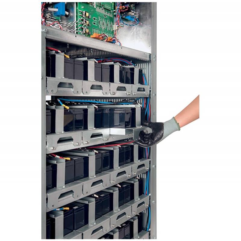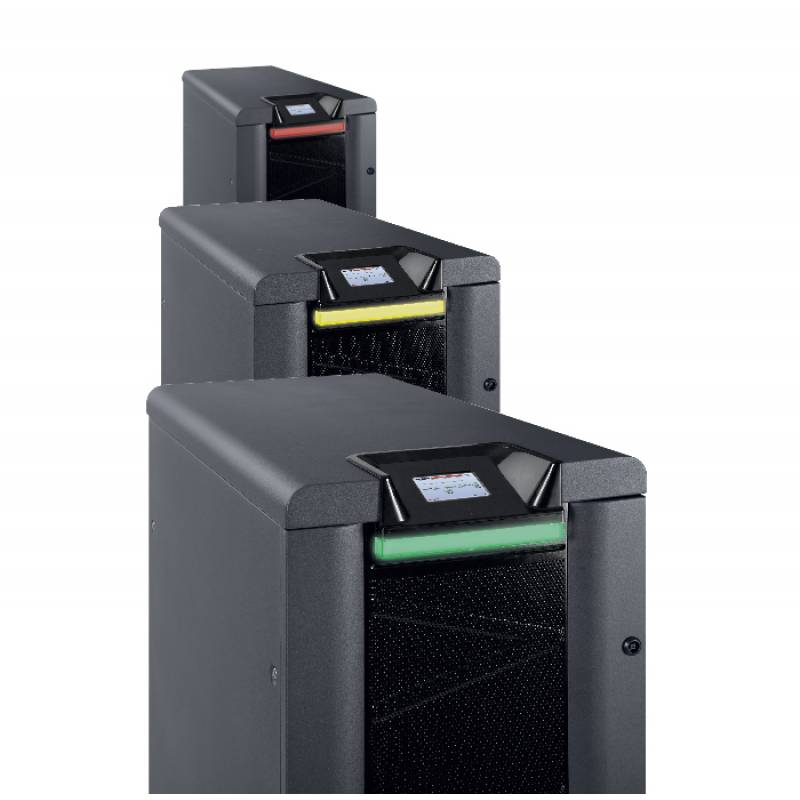 Sie ist lieferbar in den Leistungsstufen 10-15-20-30-40-60 kVA (10-15-20 kVA auch in Kompaktversion). Die Anlage ist für die Möglichkeit Batterien intern auf Einschüben oder extern in einen Batterieschrank zu bauen konzipiert. Die USV ist als Tower Gehäuse zu erwerben, wobei zwei Unterschiedliche Gehäusevarianten angeboten werden.