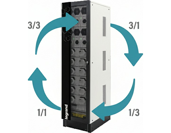 L’architecture permet de gérer les configurations des phases d’entrée/sortie dans une seule armoire